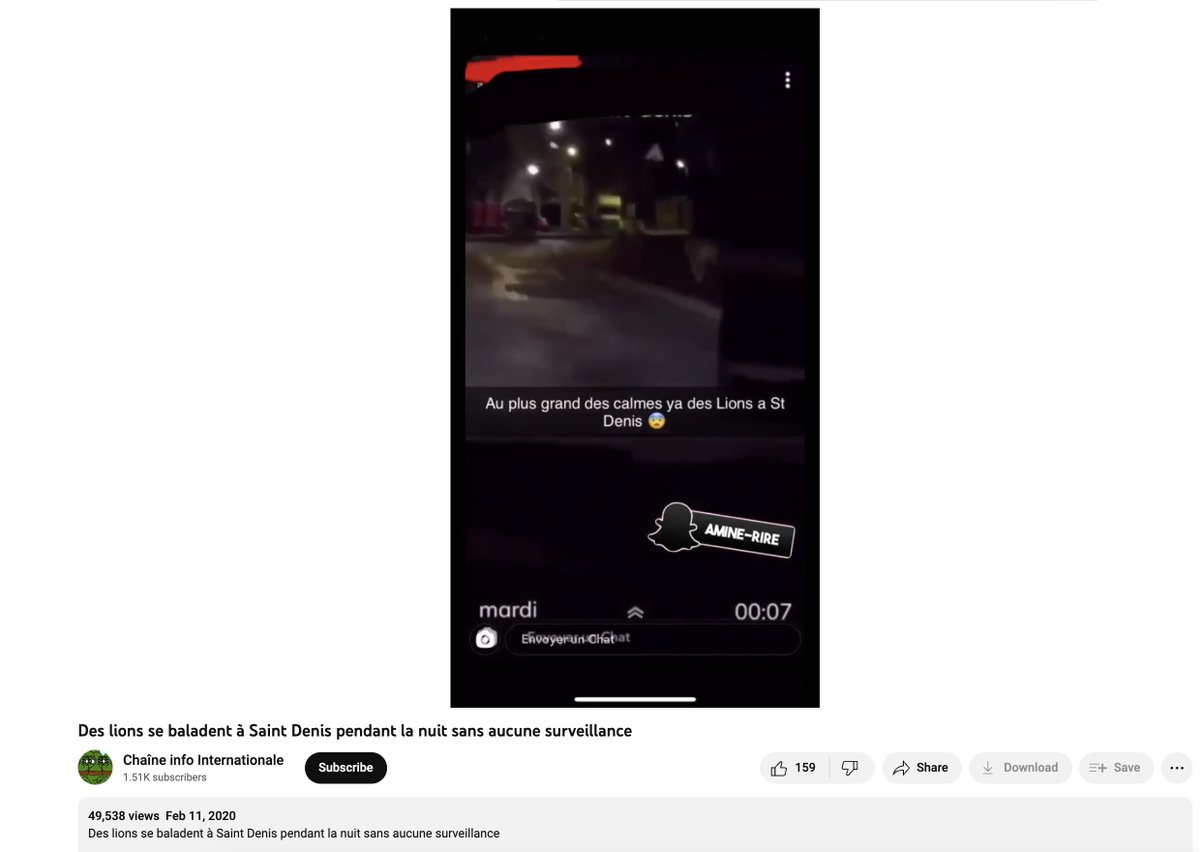 This video claims to show several lions at large in the Paris district of Saint Denis at night during the current riots.