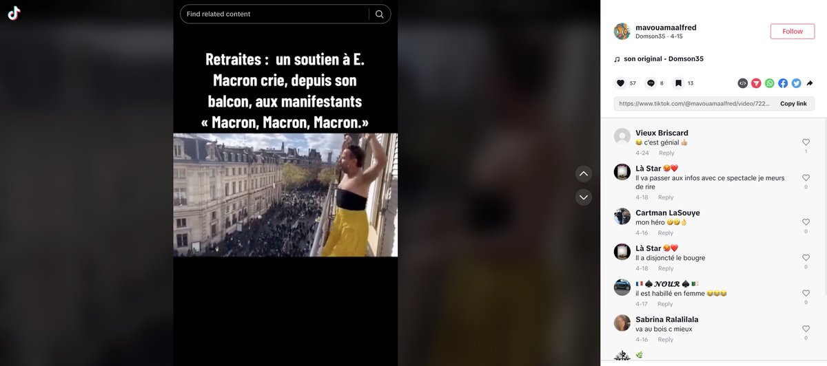 A search on TikTok shows the video is from April, and was taken during a protest against President Macron's pension reforms.