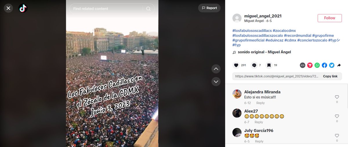 The video was posted to TikTok in early June, and shows a live concert by Argentinian band Los Fabulosos Cadillacs in Mexico City's main square Zócalo.