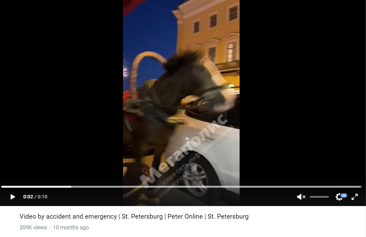The video was filmed in St Petersburg in 2022. The horse was reportedly frightened by firworks in the city.
