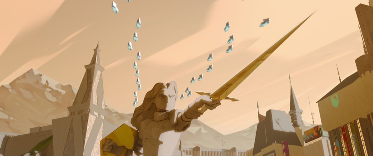 Y entonces es cuando se dan cuenta que lo que quiere hacer Nimona no es dañar a nadie, sino acabar con su propia vida contra la espada de a quién un día quiso, y de quién recibió el más cruel de los rechazos+