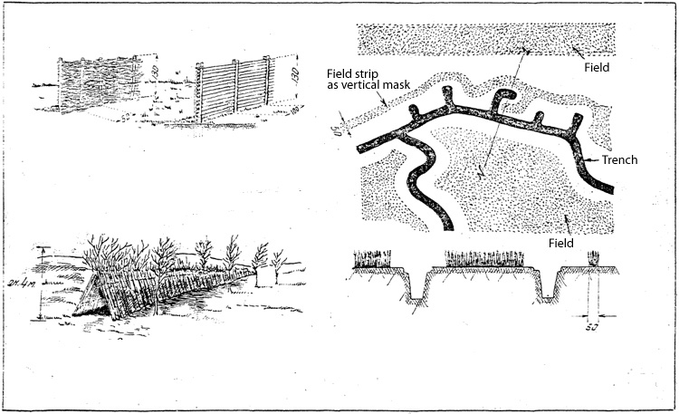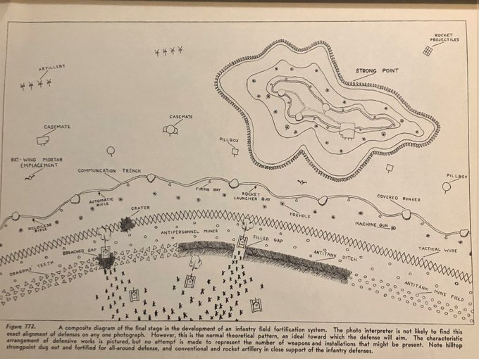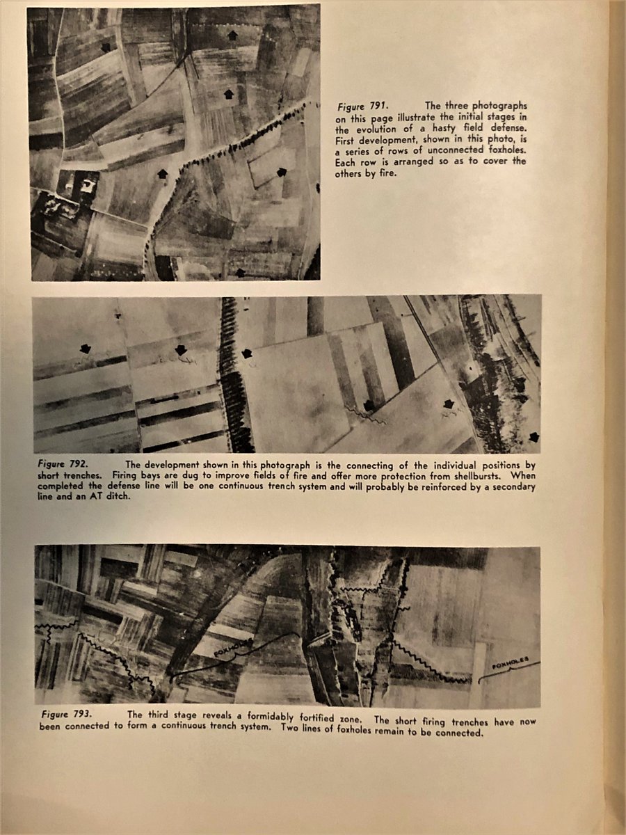This figure of a fully developed WW2 field fortification is from FM 30-236 Tactical Interpretation of Air Photos.