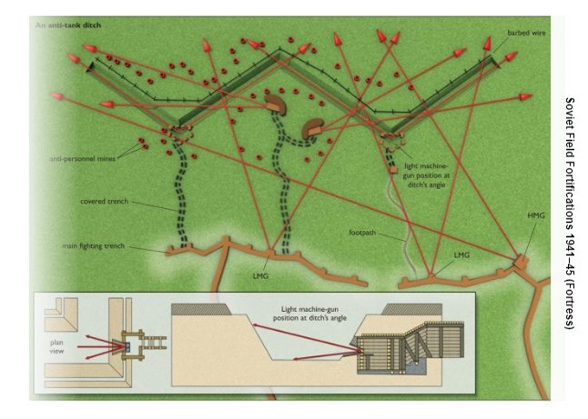 The Soviets kept back a lot of cadets in 1941-1942 that showed up as officers in 1943. When that Kurask level of integrated barbed wire, dragon's teeth, anti-tank ditch obstacle field fortification trench system appeared.