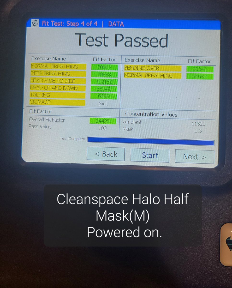 @NgoTheWorld If a respirator has a good face seal it should stay at 200+ and if it drops during an exercise it should go back up to 200+(this means the respirator has successfully resealed on its own as it should)