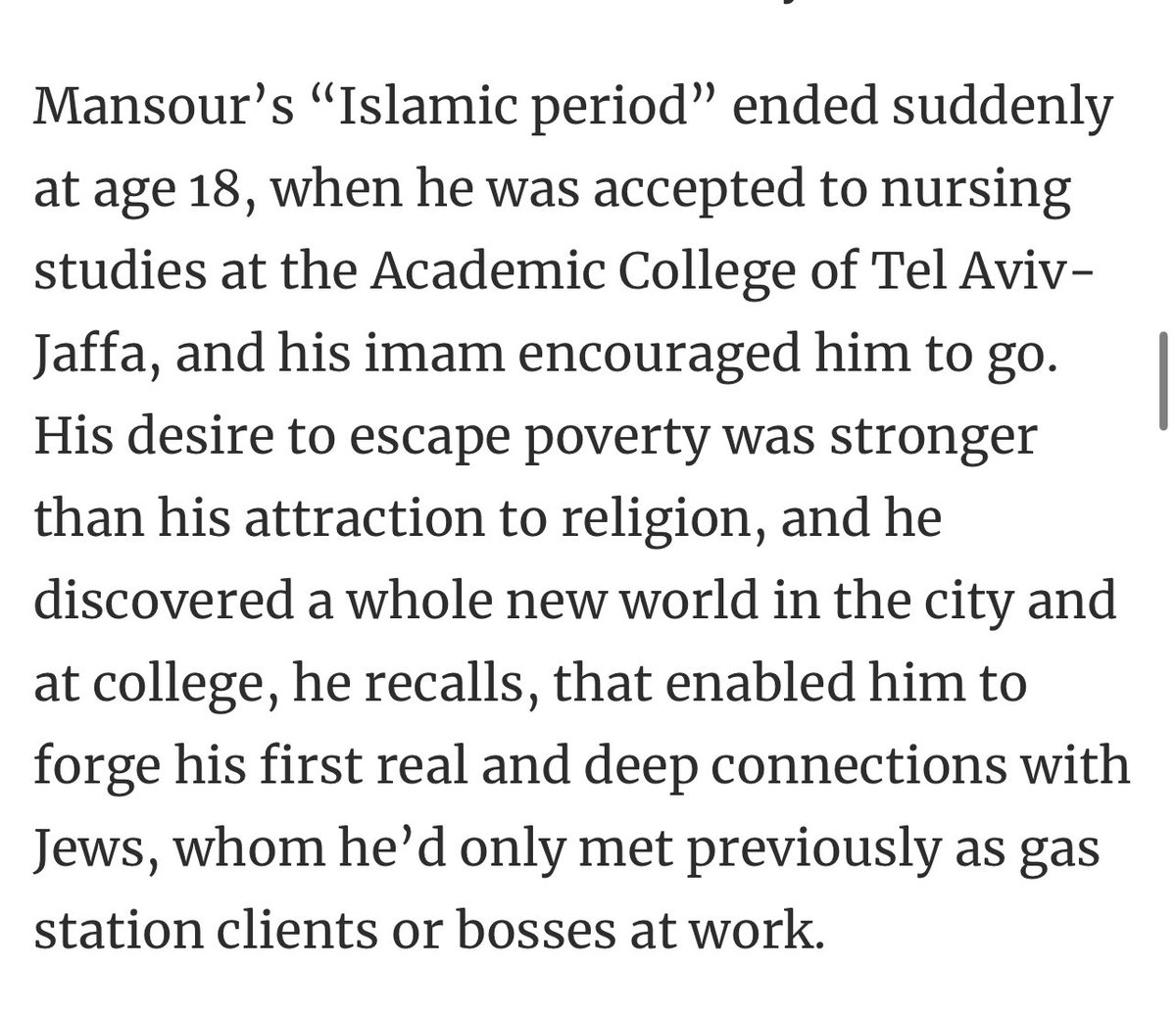 Mansour contradicts himself a lot. In this video by @RashadAlhindi (German with Arab subs) he claims both that the Imam offered him a scholarship to study in Tel Aviv as well as saying the Imam was against it ???