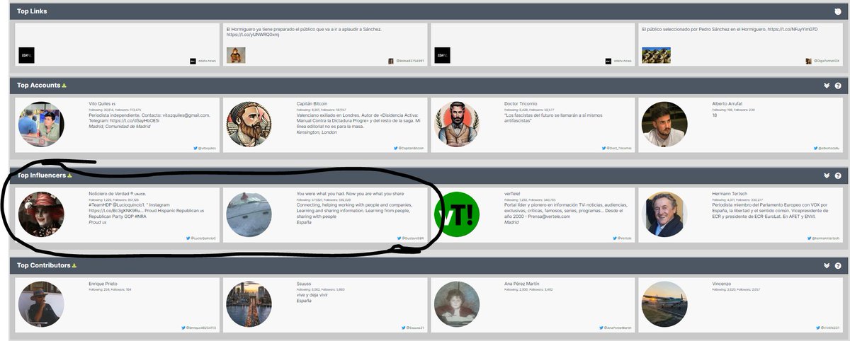 Hubo más de 60.000 tuits difundiendo el bulo de la elección del público por parte de Pedro Sánchez. En ellos podemos ver que además de Vito Quiles aparecen difusores de bulos habituales como Terscht, Capitán Bitcoin, HerQles, Capitan Tercio, WSWolverine y cuentas automatizadas.