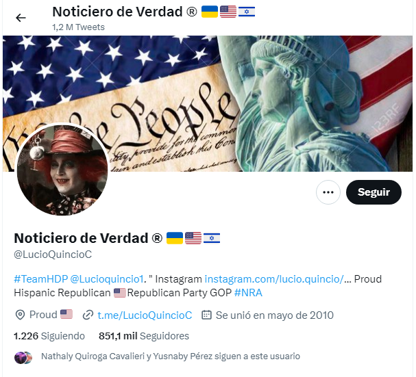 Lo mismo pasa con la otra cuenta automatizada. Para más INRI y presumiendo de usar el principio de transposición, nombró a su cuenta "Noticiero de Verdad"