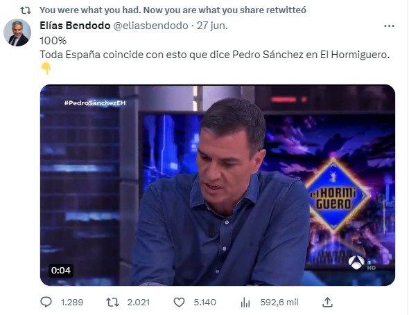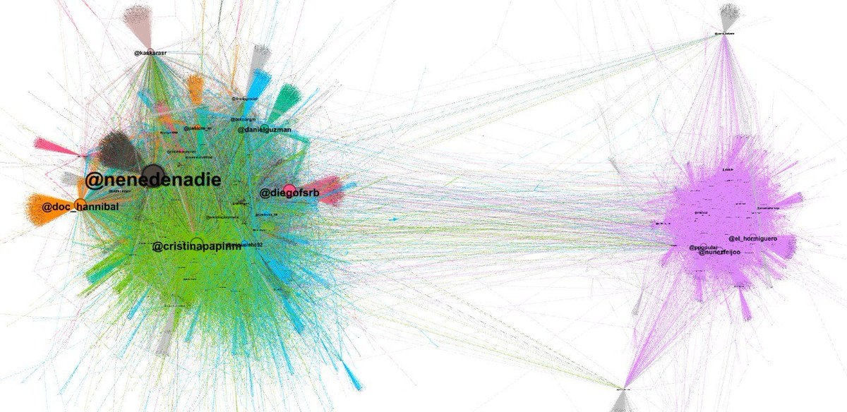 La semana pasada Feijóo y Pedro Sánchez estuvieron en El Hormiguero. Tuvieron una audiencia parecida, pero en redes el apoyo fue mucho mayor hacia Sánchez. Lo llamativo de los ataques a Sánchez desde la derecha fue el uso de bots para difundir bulos y la manipulación de vídeos.