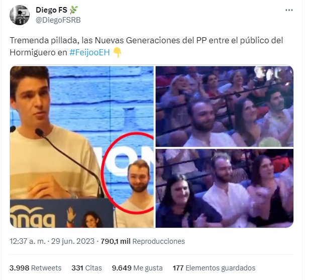 Curiosamente uno de los tuits más destacados fue la pillada de militantes de Nuevas Generaciones en el público de El Hormiguero, sin la ayuda (supuestamente) de fuentes internas del programa como presumía Vito Quiles.