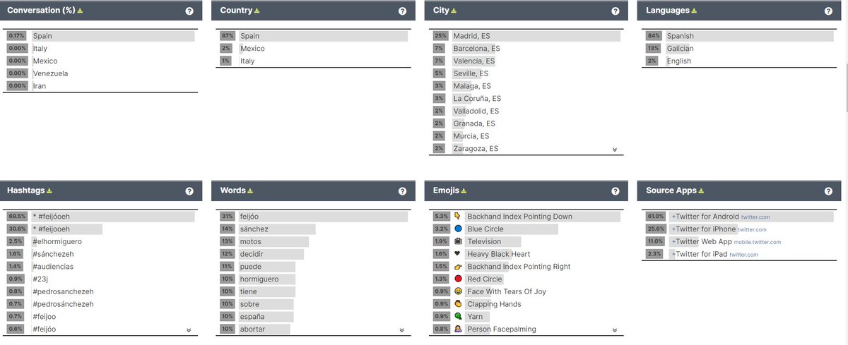 Se lanzaron más de 120.000 tuits con el HT #PedroSanchezEH con más de un 60% de apoyo a Pedro Sánchez. Las cuentas que más impacto tuvieron fueron @cristinapapinm @pdrsnche y @psoe en la izquierda y Vito Quiles difundiendo tuits con el bulo que el PSOE obligó a cambiar el público