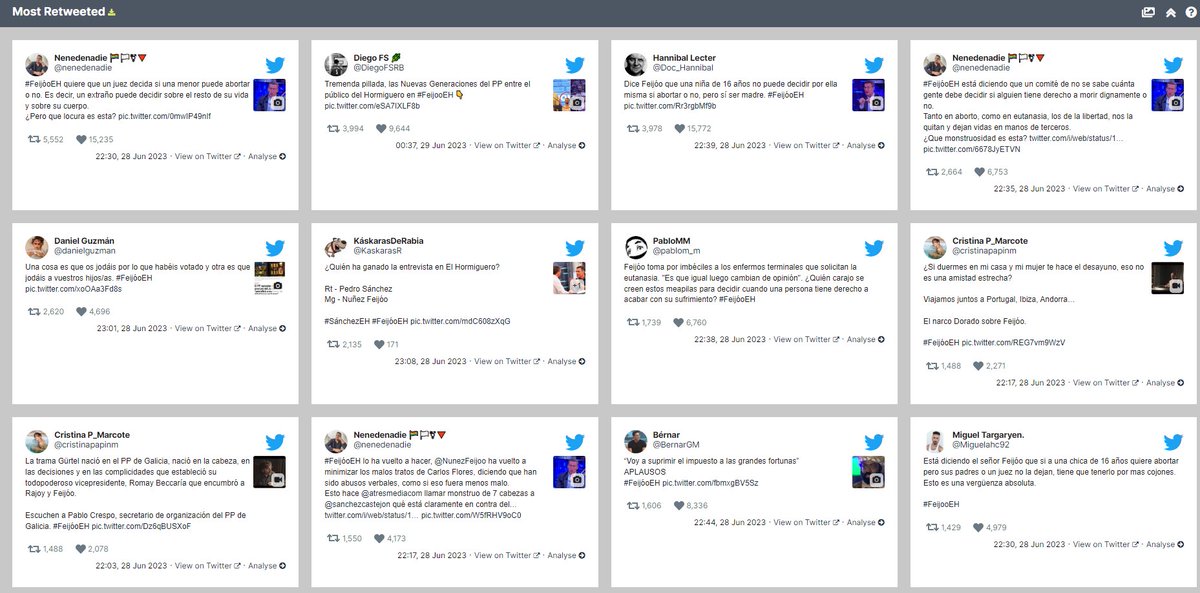 En cuanto al programa de Feijóo el apoyo al candidato del PP estuvo en torno al 20% frente a un 80% de tuits críticos.