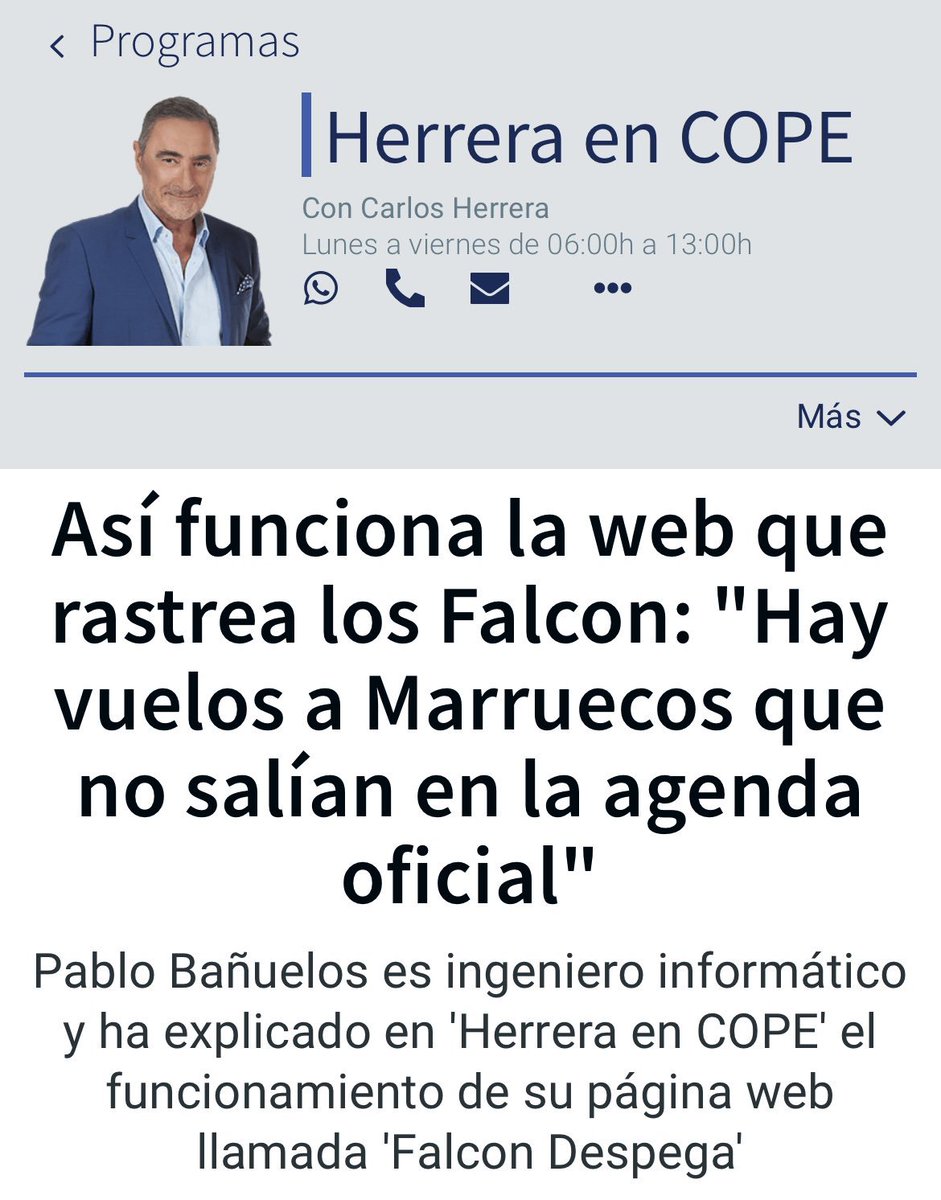 El bulo lo lanzó tras este titular en la COPE de la entrevista al creador de la web con información pública de los vuelos de la flota de aviones del gobierno, pero no el uso que se le da.