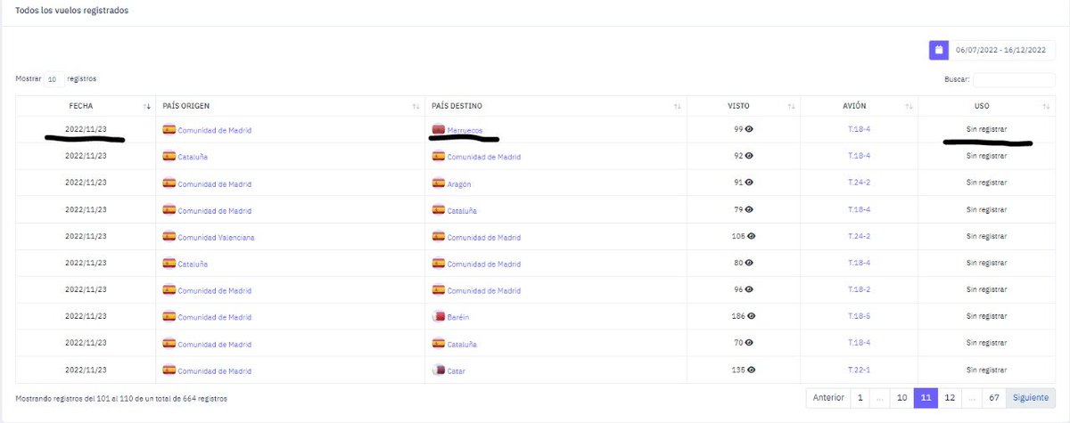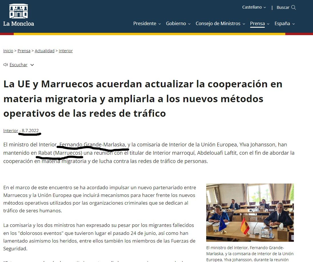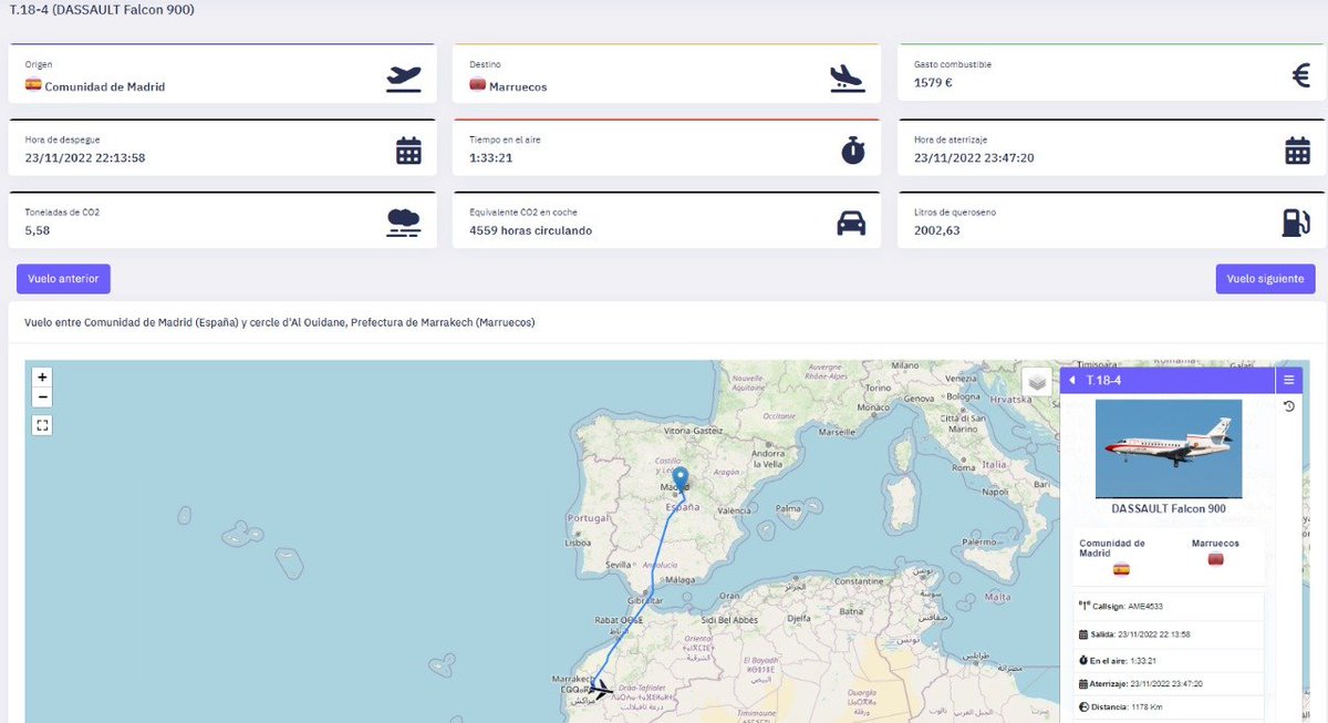 Todos los vuelos que aparecen a Marruecos en la web corresponden a viajes oficiales de diferentes ministros, ninguno de ellos está en la agenda de Sánchez, ni registrado en la web. Batet en octubre, Marlaska en julio o Albares en noviembre de 2022 son los vuelos no registrados