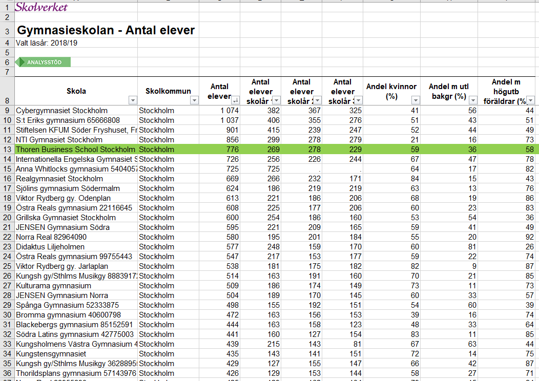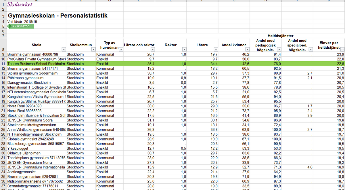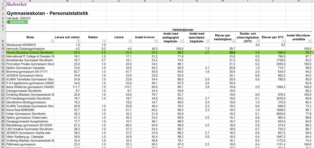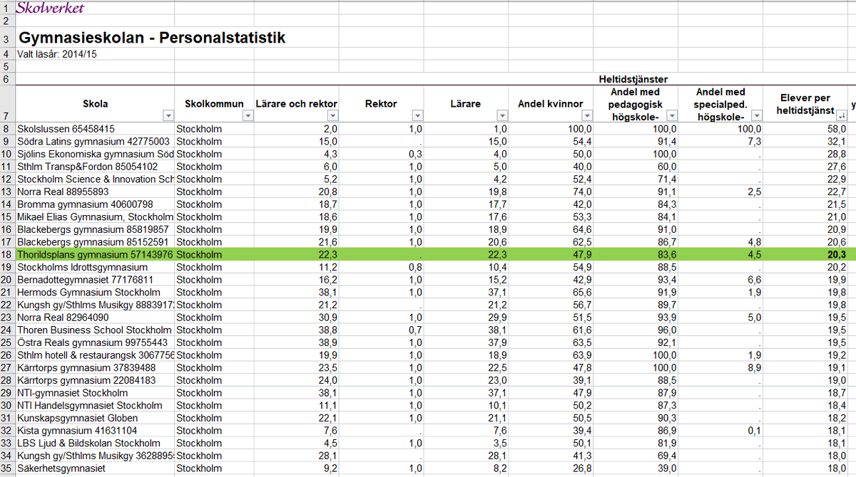 Tyvärr verkar de där resurserna inte "återinvesteras i verksamheten" som det brukar heta. Cirkeln är sluten och Thorén har otroligt nog den lägsta lärartätheten i hela Stockholm.