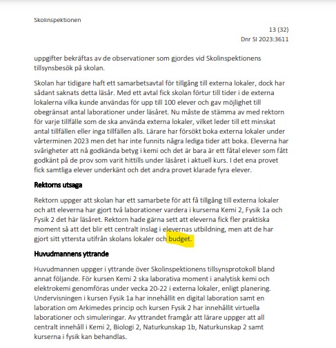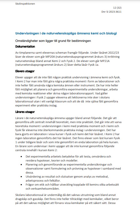 Siffrorna talar för sig själva och @Skolinspektion (som inte kollar på ekonomi, lärartäthet, elevers behov och sådana meningslösheter) hotar med vite på en miljon i en rapport som är bland det värsta jag läst. Här ett utdrag om undervisningen i kemi.