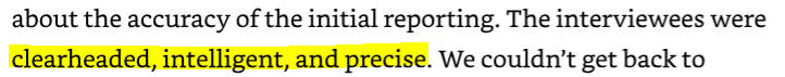 In his memoir, Strzok claimed that interview "confirm[ed] that the report [Paragraph 5] had conveyed the allegation accurately. We had eliminated the possibility that someone had misheard something and satisfied ourselves about the accuracy of the initial reporting."