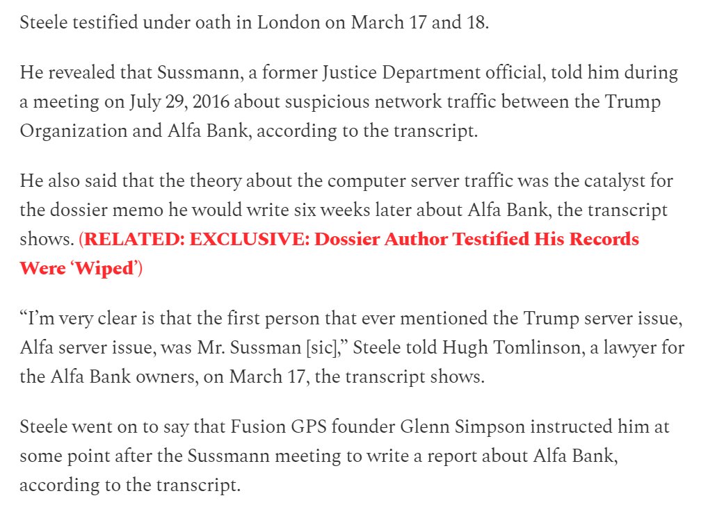 Durham's narrative associated the July 29, 2016 meeting with Perkins Coie with the Alfa Bank hoax - an interesting but relatively minor component of Russiagate hoax in which Durham over-invested. A much more component of this meeting was Steele visit to Perkins Coie.