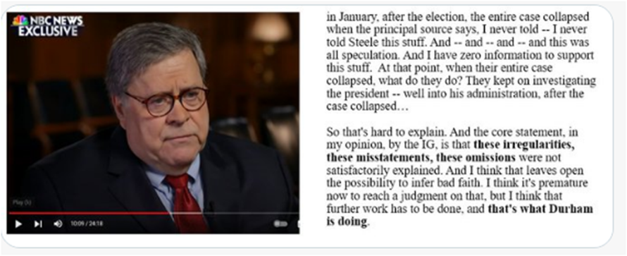 my recommendation for Durham research priority would have been investigation of Feb-May 2017 FBI "mis-statements, irregularities and omissions" (AFTER Danchenko interview) for "bad faith". In other words, what Barr said that Durham would do and was already doing.