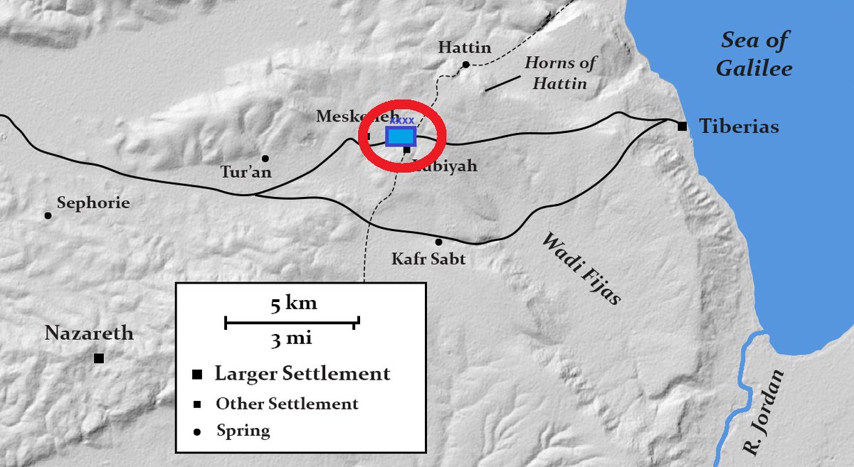 It must be said that none of the Crusaders’ options were good. Even if they resisted the temptation to march out, they only had 20-23,000 men—about half Saladin’s number. He could easily screen their forces at Sephorie while moving on to capture other settlements in the Kingdom.