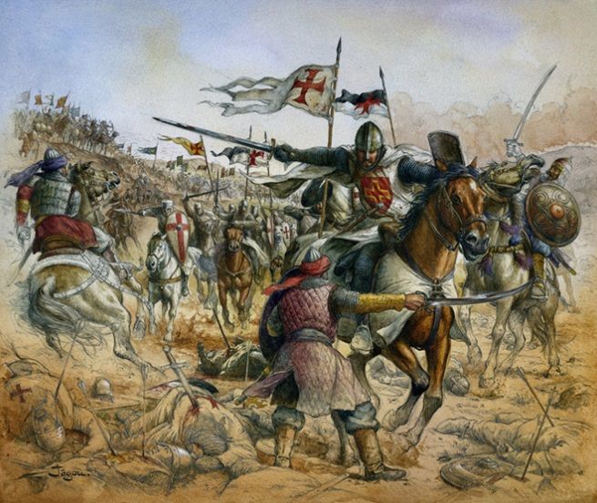 The Franks in Gaza and Ascalon gathered what other men they could and set off in pursuit, intercepting Saladin’s main body as they were crossing a stream swollen by autumn rains. They struck hard before he could recall the rest of his army, and his entire force dissolved.
