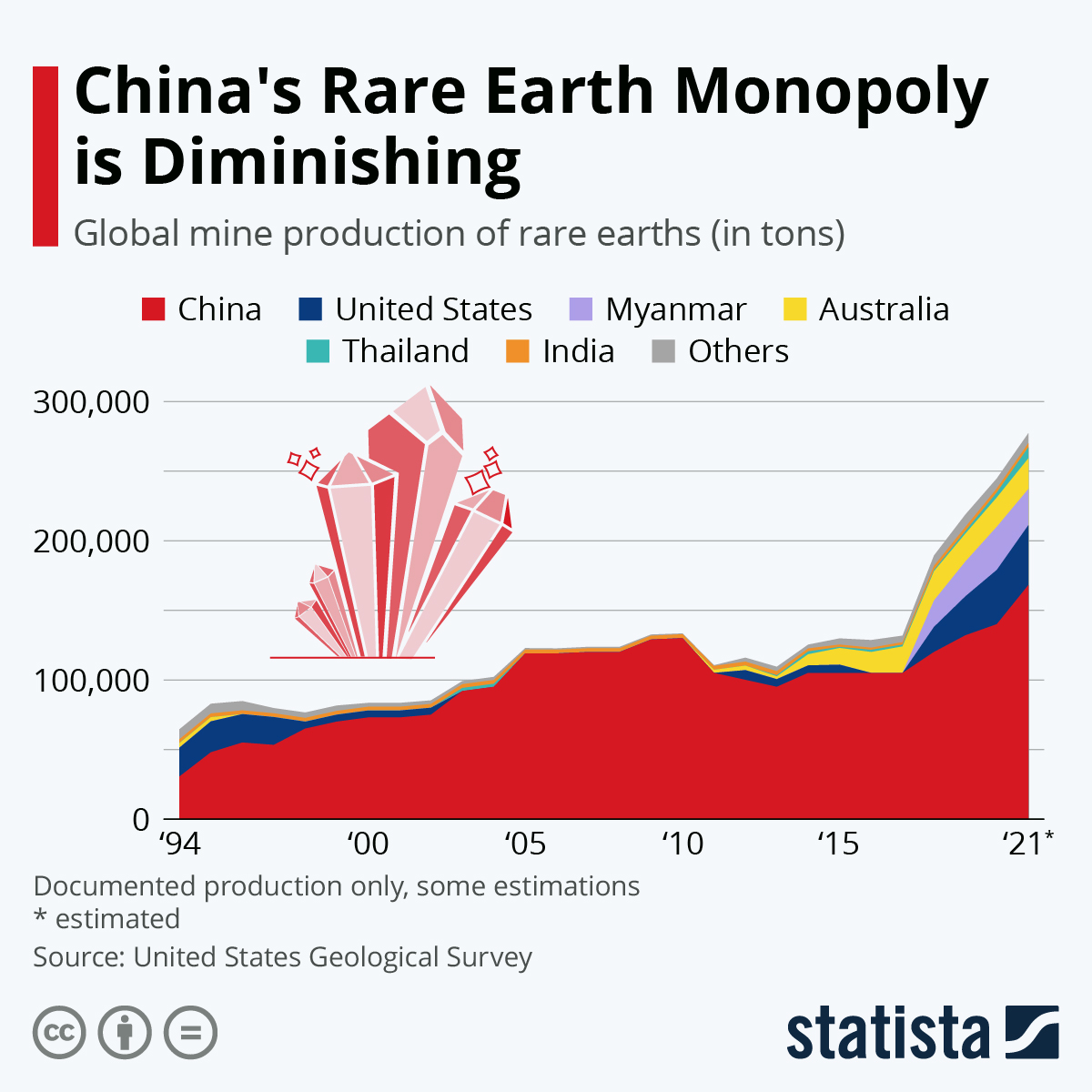 - מינוף מקומה האסטרטגי של סין (במיוחד לפני עשור+) בשרשראות הייצור הגלובליות - גם בתחומים כמו עיבוד יסודות נדירים שנדרשים לתעשיה.