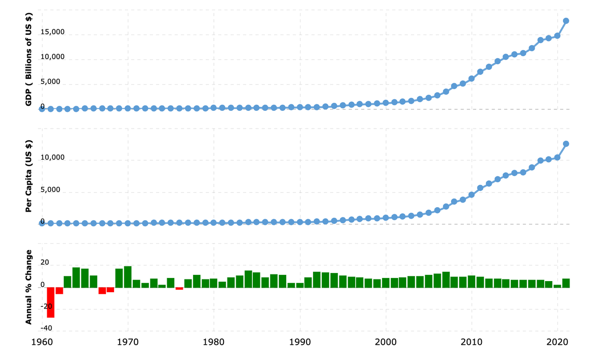 מעל 4 עשורים של צמיחה חסרת תקדים בהיסטוריה, החל מ-1978 עם תחילת תהליך הרפורמות וההיפתחות לעולם שהוביל דנג שיאופינג.
