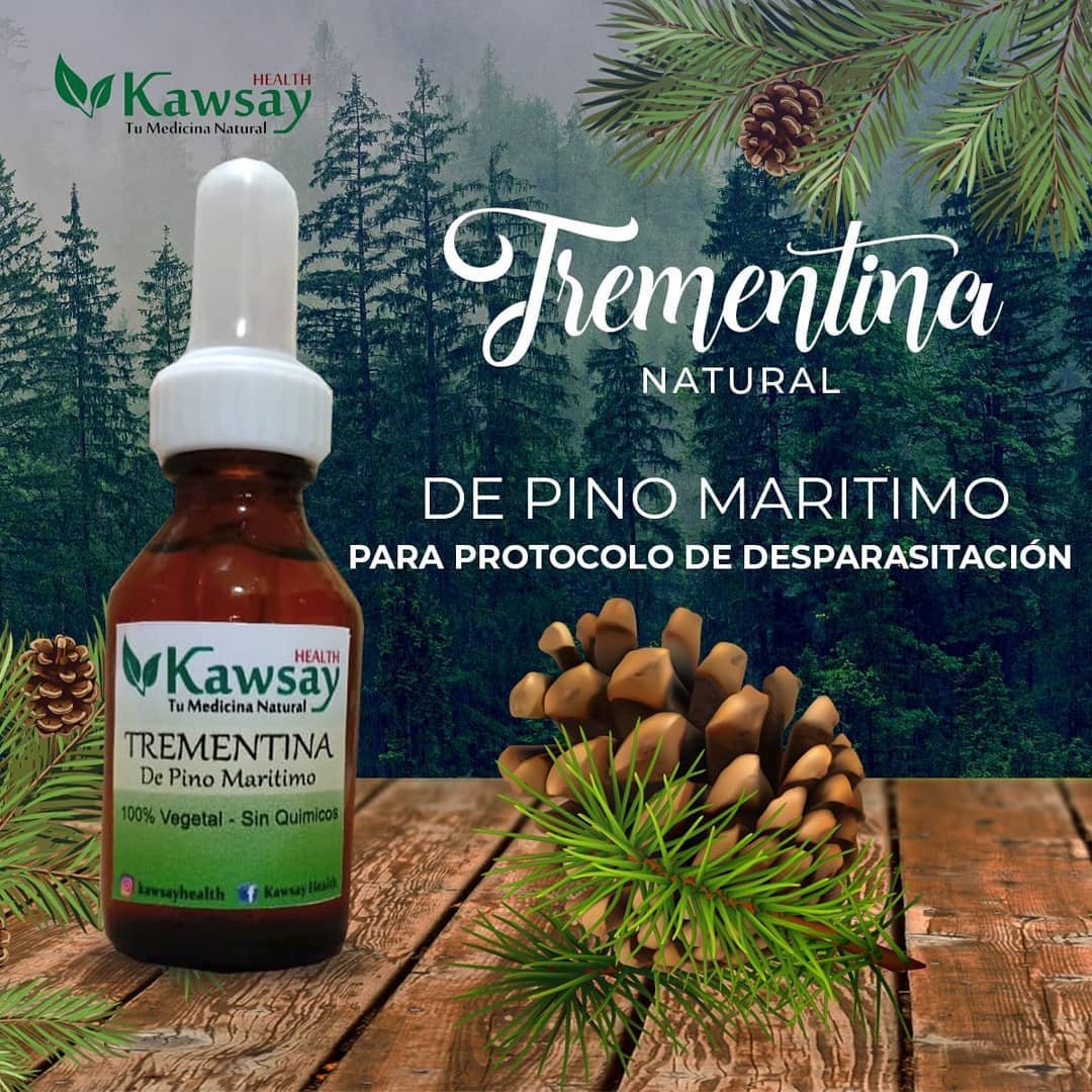 Realmente es un destilado de resina de pino, los naturistas lo usamos para desparasitar y combatir la cándida entre otros microbios.