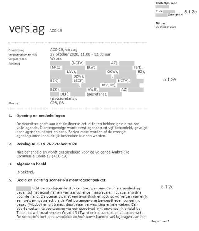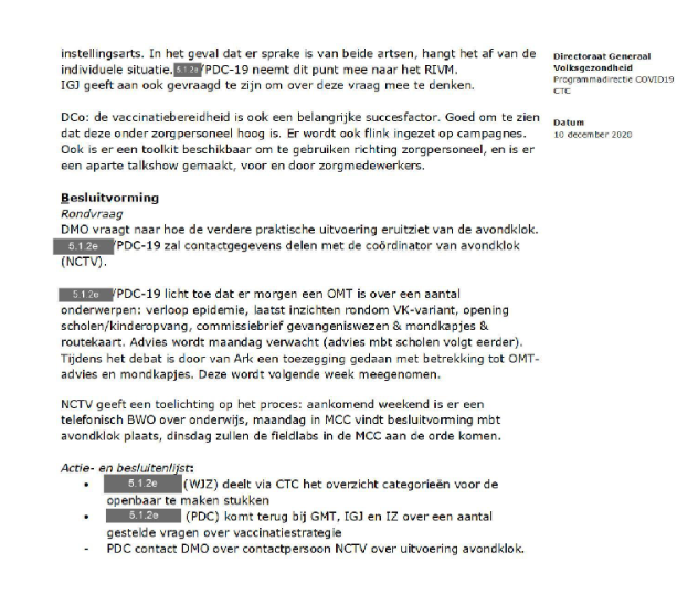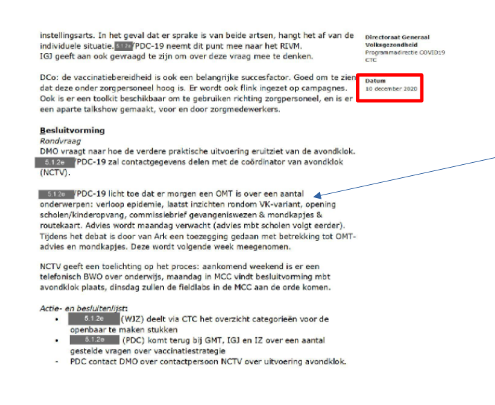Verder op in oktober worden de andere departementen ingelicht over de lockdown en avondklok. In december wordt dan een excuus gezocht.