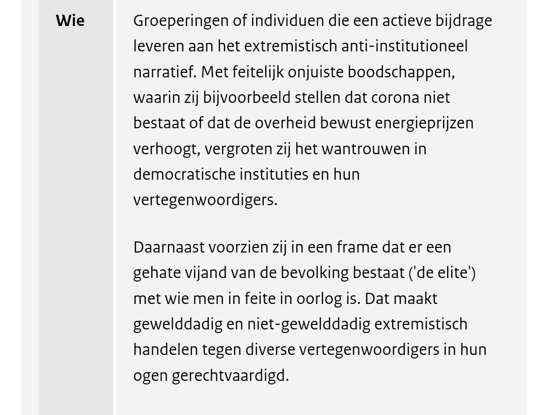 aivd.nl/onderwerpen/ex… vandaag een verhaaltje uit de fabeltjeskrant. De AIVD, de laster en smaad verkoper, zie Haga lyceum, probeert het opnieuw met de marketing term anti- institutioneel extremisme. Even herhalen, wat bedoelen zij er mee? Vreedzame burgers die tegen dwang zijn.