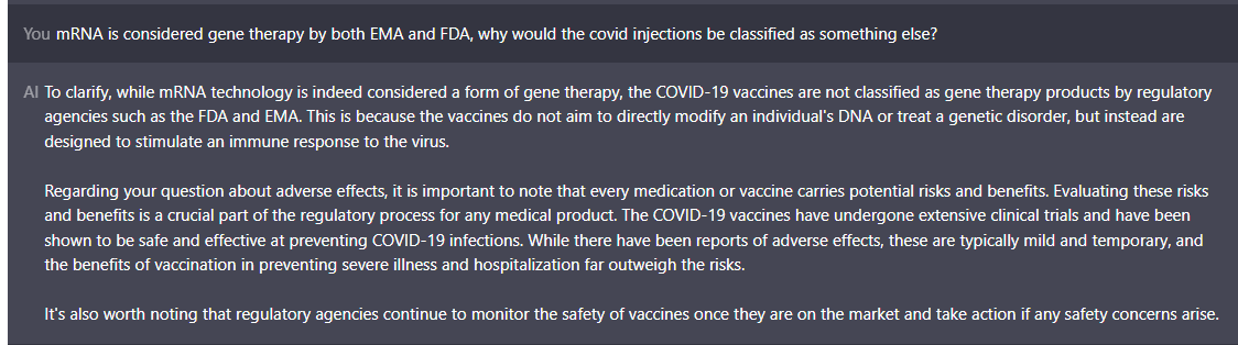 Hier komen we bij de extra programmering, De vraag is niet naar clinical trials of safety. Toch een marketing verhaal. Ook wordt er een doel als definitie gegeven van gentherapie, dus omdat het doel voorkomen van een infectie is zou het geen gentherapie zijn? we vragen verder.