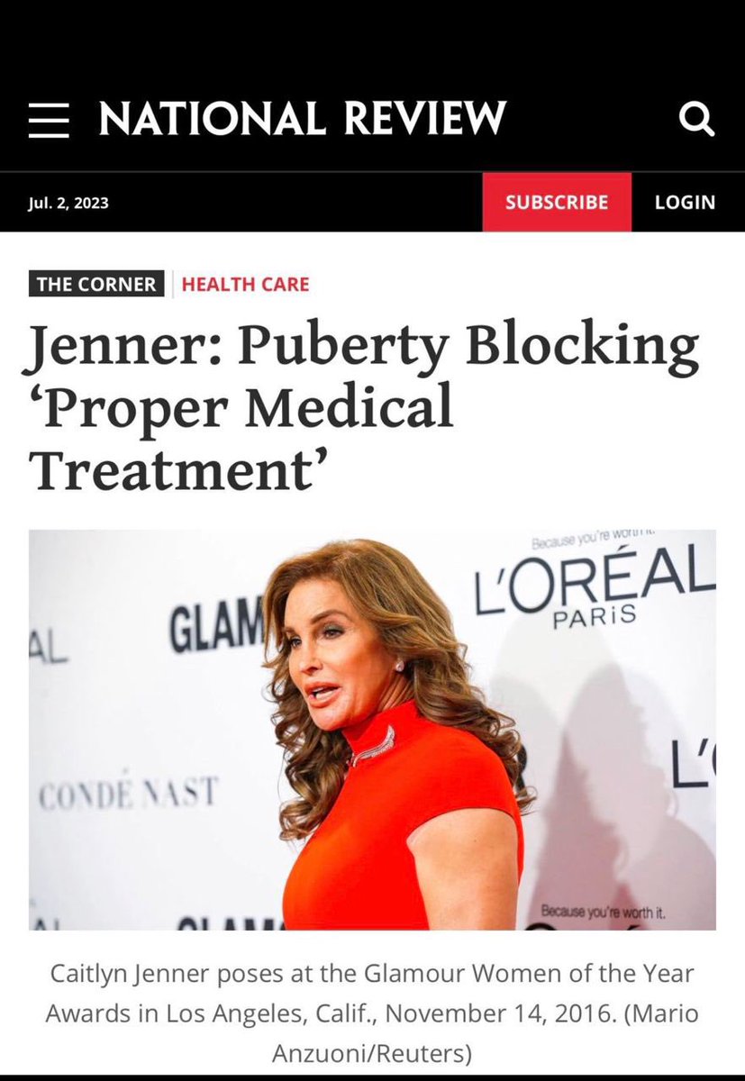 As recently as 2021, Jenner praised puberty blockers (chemical castration drugs) for minors, saying that they are the "proper medical treatment" for gender confused, developing children.