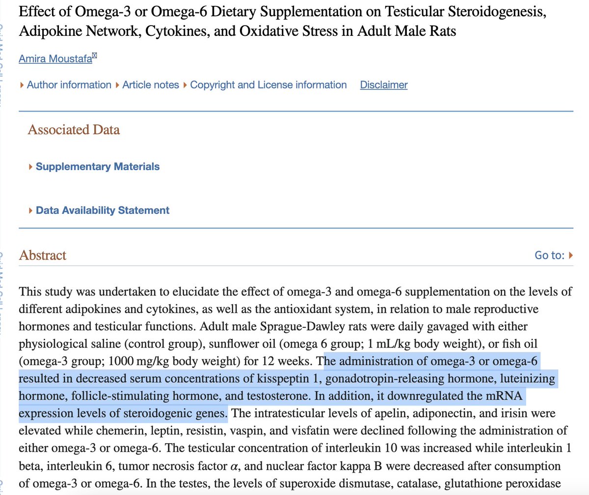 Seed oils are the most underrated endocrine disruptor in the environment Seed oils block binding of the androgens to the receptor and are estrogenic.