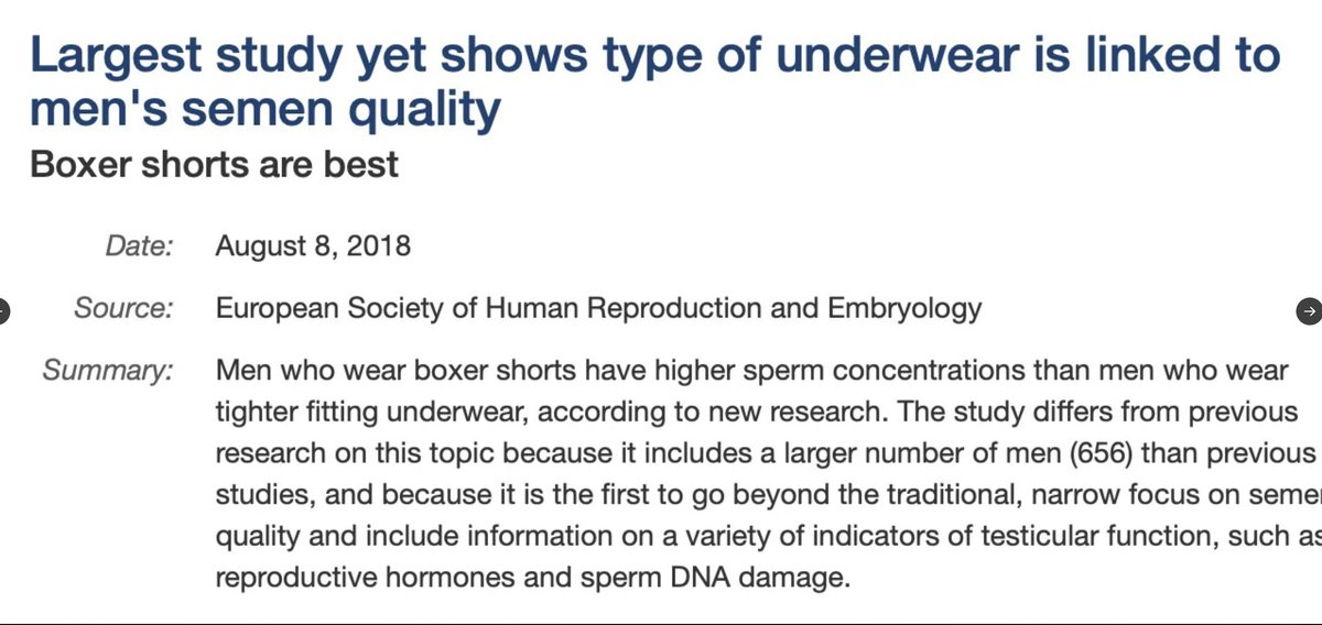 Tight, especially polyester, underwear is inhibiting male fertility.