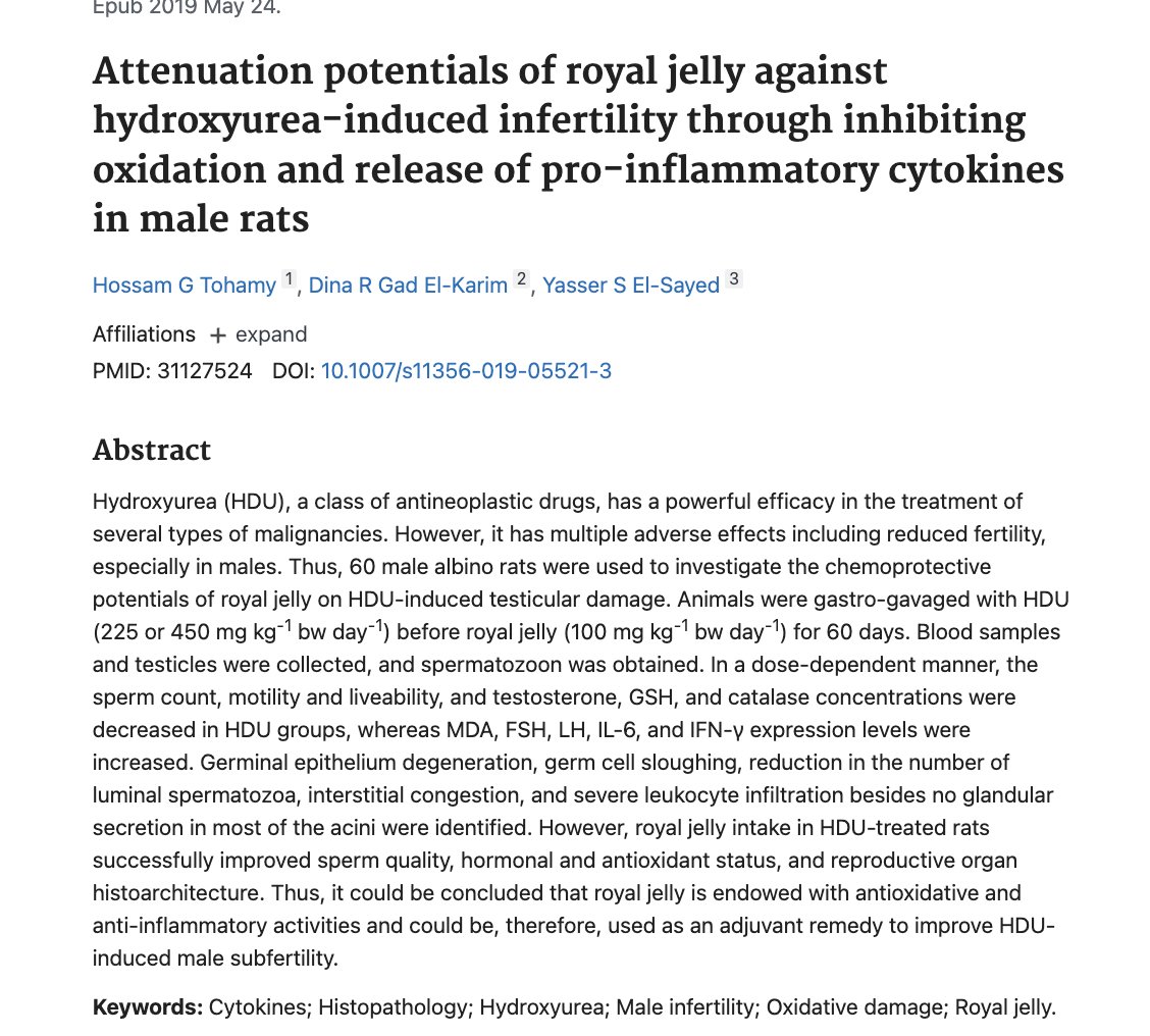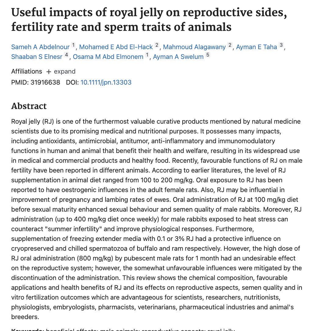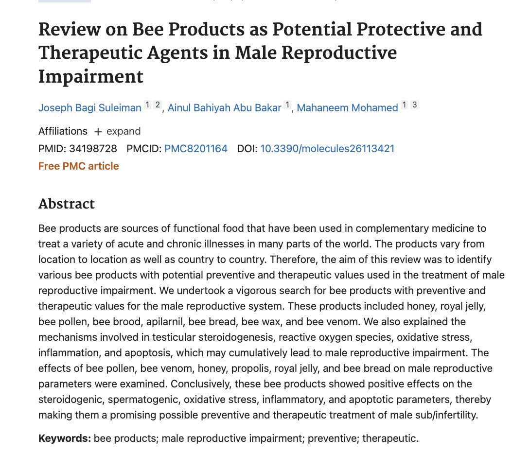 both royal jelly and bee pollen have been shown to reduce oxidative stress and improve sperm health in male animals.
