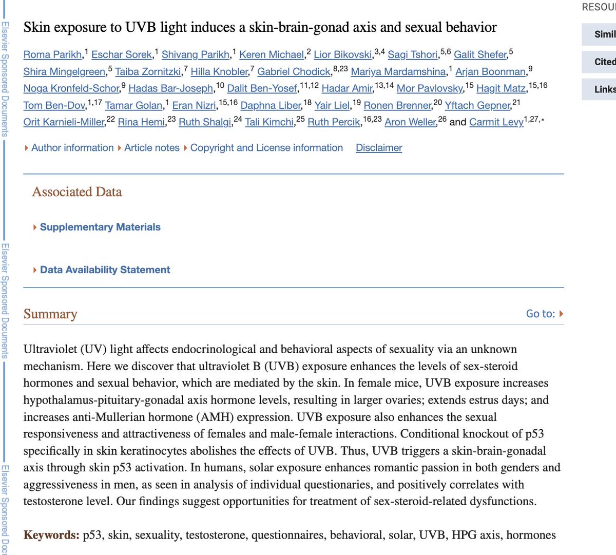 other studies show that sunlight striking the skin triggers an increase in testosterone and romantic passion.
