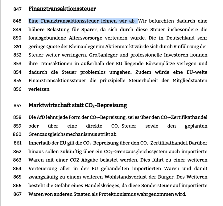 8. Insgesamt gibt es im AfD-Europaprogramm 1/3 mehr "kulturelle" als "ökonomische" Forderungen. Das schlägt sich nieder in Punkten wie „Abtreibungen müssen Ausnahme werden“ sowie der Ablehnung von „Gender-Ideologie“, „Klimawahn“ und einer historischen „Schuld- und Schamkultur“.