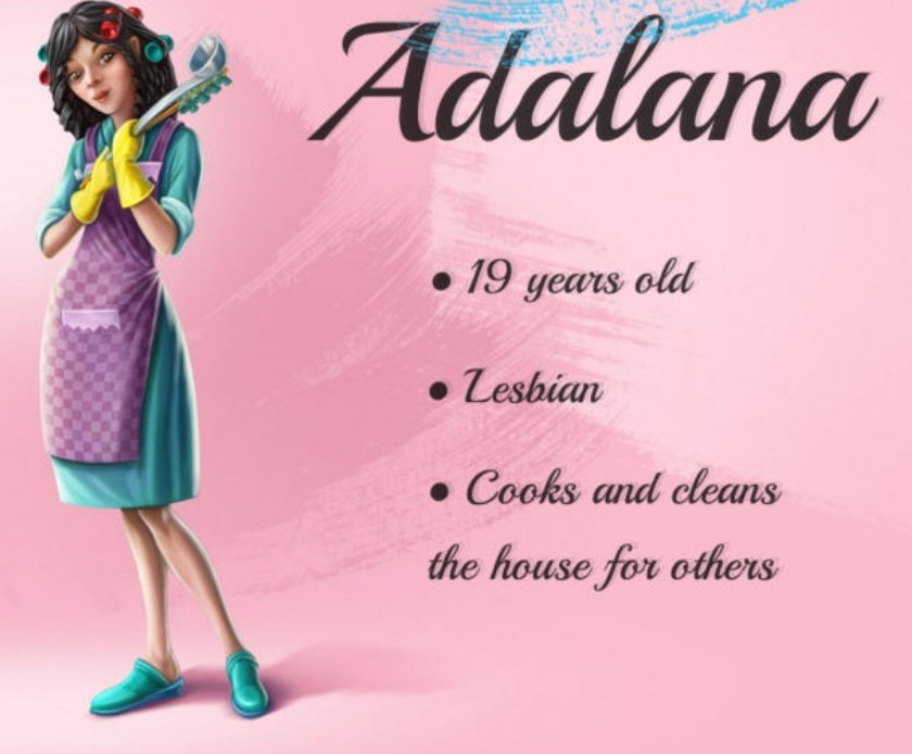 ۹.آدلانا: ۱۹ ساله لزبین، آشپزی میکنه و خونه رو تمیز نگه میداره و شاعره. آدلانا وقتی نقطه شد، به «تجاوز جنسی» ای که بیلی انجام داد اعتراف کرد و بعد از اعتراف ،بیلی وقتی دوباره بالا اومد یادش نمیومد که به چنین چیزی اعتراف کرده.آرتور هرگز اجازهی بالا اومدن شخصیتهای نامطلوب...