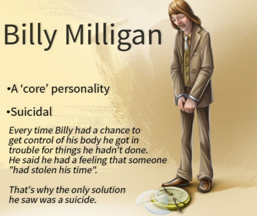 بیلی میلیگان از اولین نمونههای شناخته شده ی «سندروم چند شخصیتی» هست.