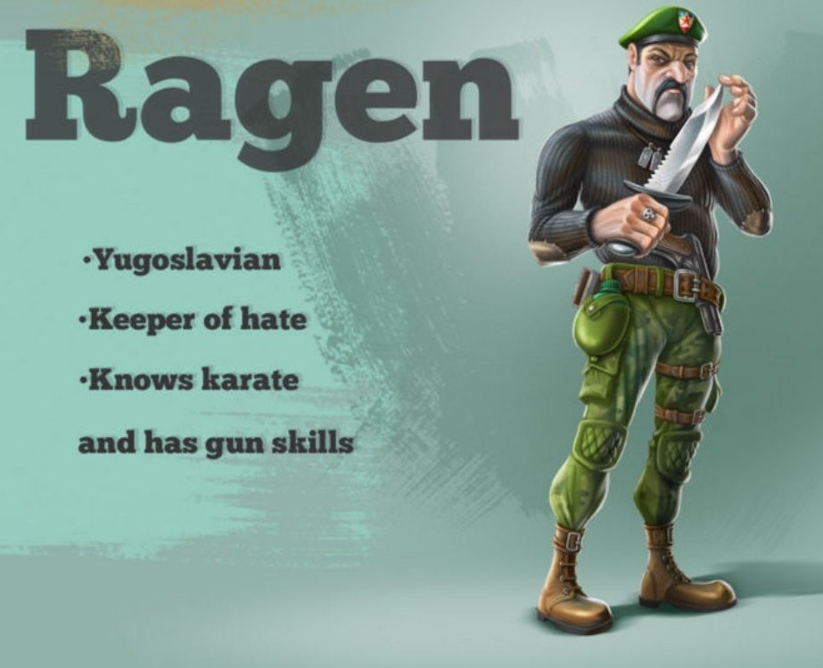 ۳.راگن واداسکوویچ: یوگسلاو، نگهدارندهی نفرت از چیزی یا کسی، راگن لهجه اسلاو داره و وقتی «بالا» بود، بیلی میتونست به زبان صربی و کرواسی بخونه و بنویسه! مسلط به هنرهای رزمی،