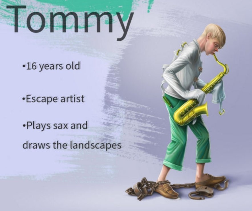 ۵.تامی : متخصص در فرار از دست پلیس،اون نوازنده و متخصص الکترونیکه، همینطور نقاش مناظر طبیعی.