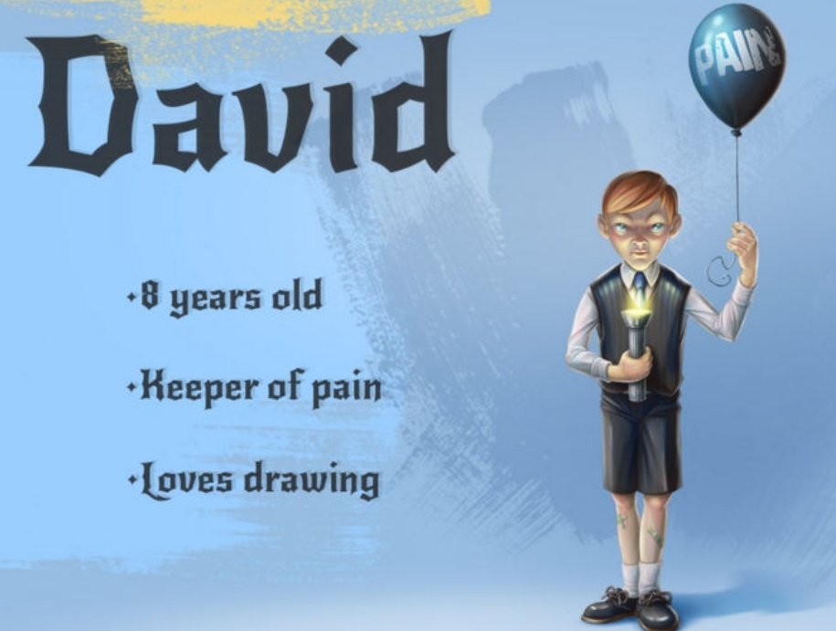۷.دیوید : فقط ۸ سال داره و هروقت که جسم درد میکشه اون نقطه میشه تا درد رو تحمل کنه.اولین شخصیتی که بعد از خود بیلی ،تو ذهنش نمود پیدا کرد.
