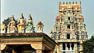 யாளிகளும் உள்ளன. ஒவ்வொரு தூண்களும் ஒவ்வொரு இசை வெளிப்படுத்துவது இந்த கோயிலின் தனிச்சிறப்பாகும். கோயிலின் திருச்சுற்று மதில் சுவற்றில் கிழக்கு நோக்கி ராஜகோபுரம் 5 நிலைகளையும் ஐந்து கலசங்களையும் கொண்டுள்ளது. விஷ்ணுவின் தசாவதார சிற்பங்கள் பல வண்ணங்களில் கோபுரத்தை அலங்கரிக்கின்றன.