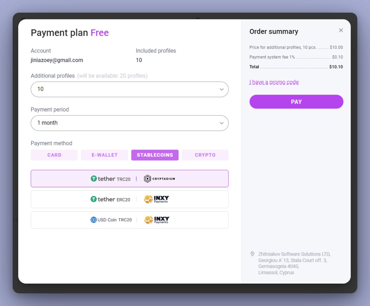 Next, enter your billing address. Feel free to enter a random address, as long as it is not on the list of restricted countries (such as the USA, Russia, etc.) It doesn't really matter since we will be paying with crypto.
