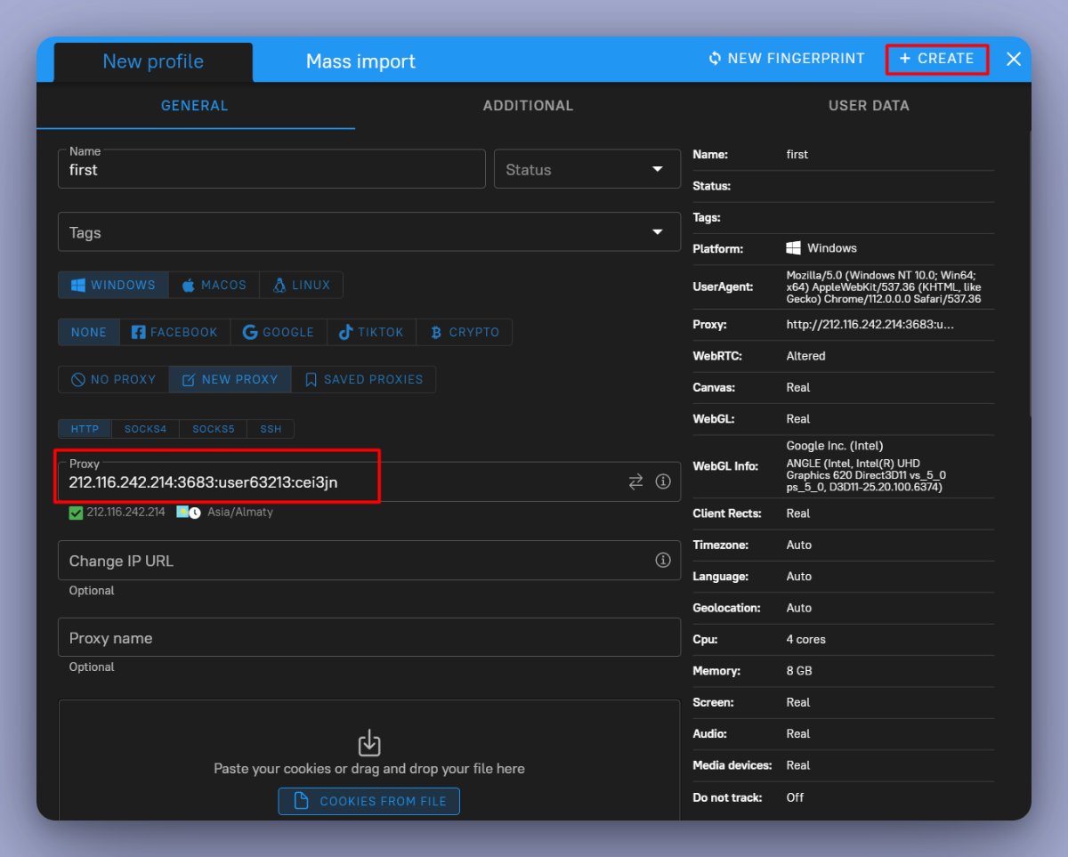 16/ Install Dolphin Anty, create a profile, and add your proxy.