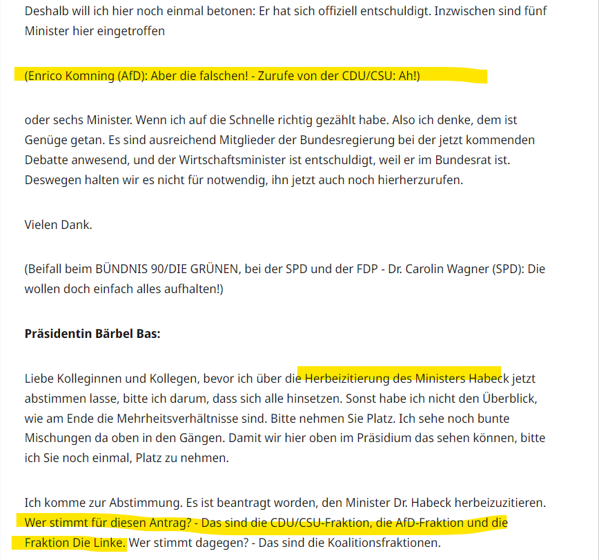 Direkt vor der Rede von Merz beantragt dessen Padawan Thorsten Frei die Herbeirufung von Habeck. Der musste den Bundestag verlassen, weil er im Bundesrat auf dessen >