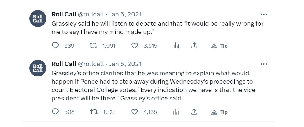 3. I am as convinced today as I was then this was the plan: VP Pence was removed from the Capitol. Grassley tipped his role in the coup that was reported the day the planning was complete: