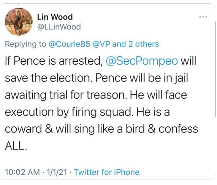 2. When this was happening my first thoughts went to "what's the plan? If they stopped the count that might jam up Jan 20 but it would not create a basis for Trump and Pence to remain in power. Their terms would end at noon and nothing could stop that. So what was the plan?
