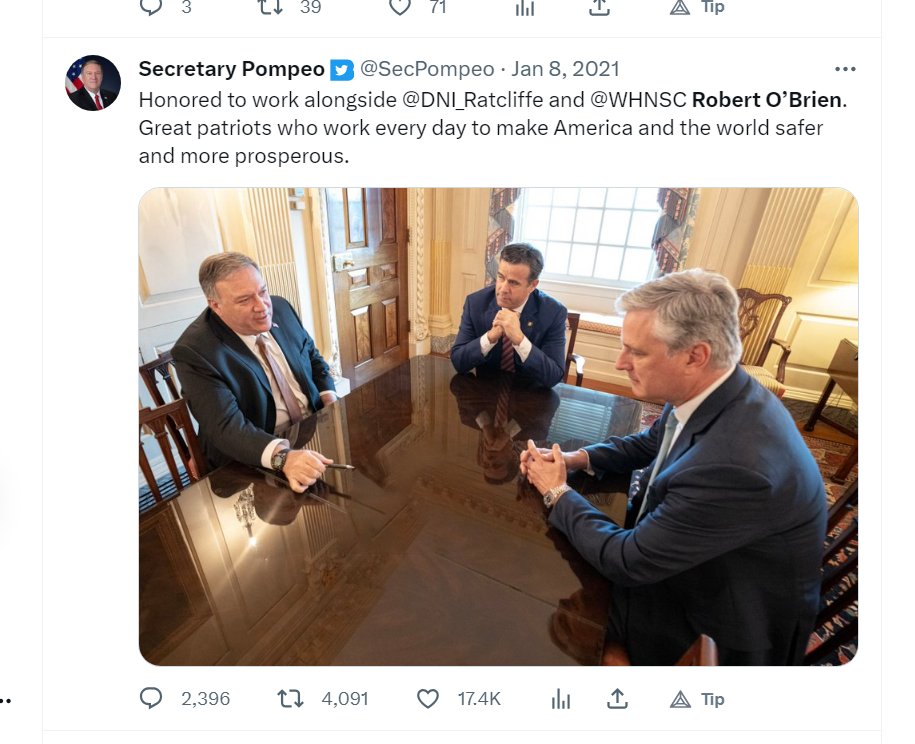 12. But Pompeo is smart and knew that the plan had failed but he needed to remain in play so after conferring with his Kock/SVR handlers, he smartly says the right thing.