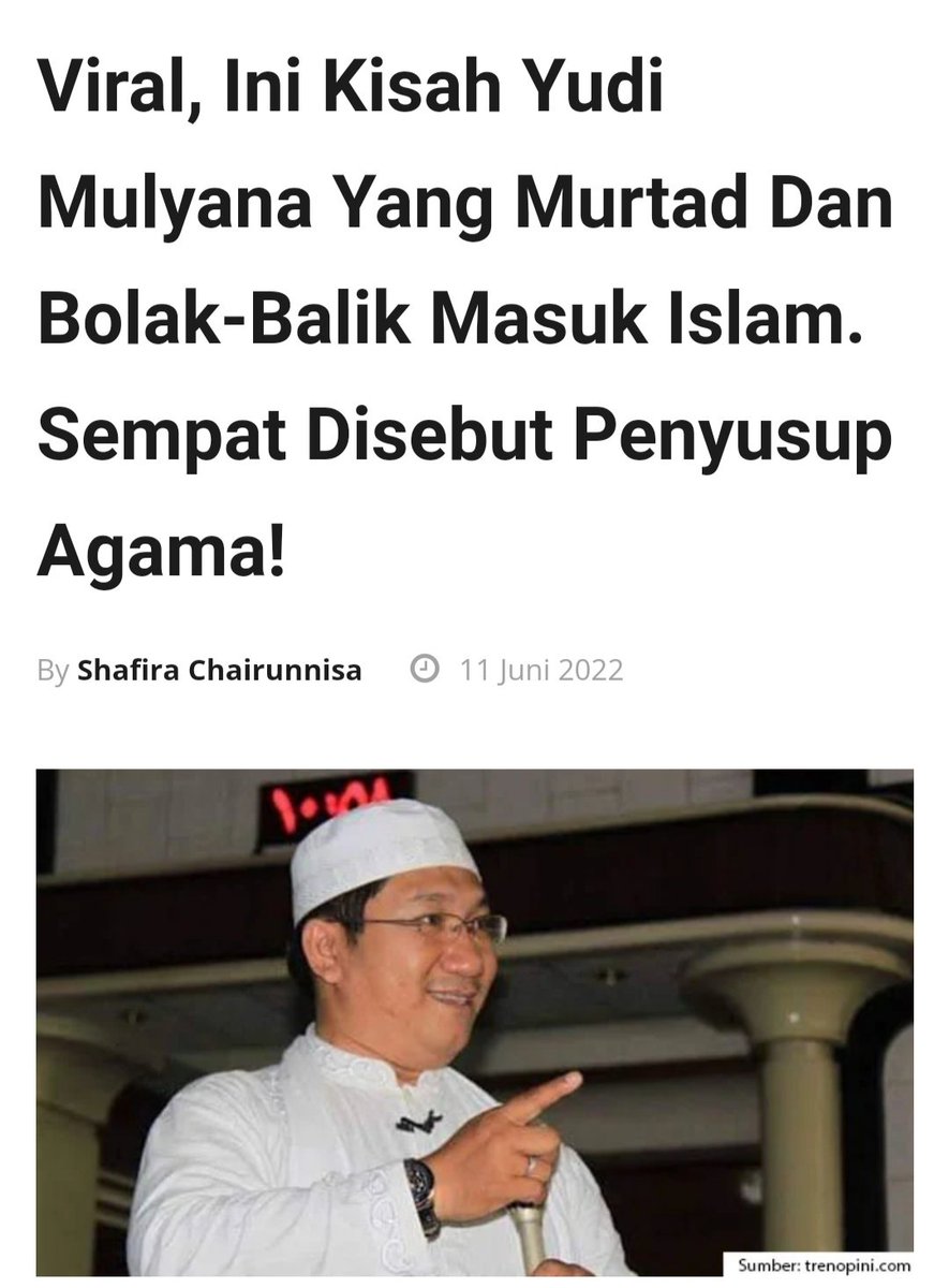 Yudy Mulyana ini berkali2 mau keluar dari Islam tidak berhasil krn tekanan. Tetapi secara diam2, dia kembali✝️