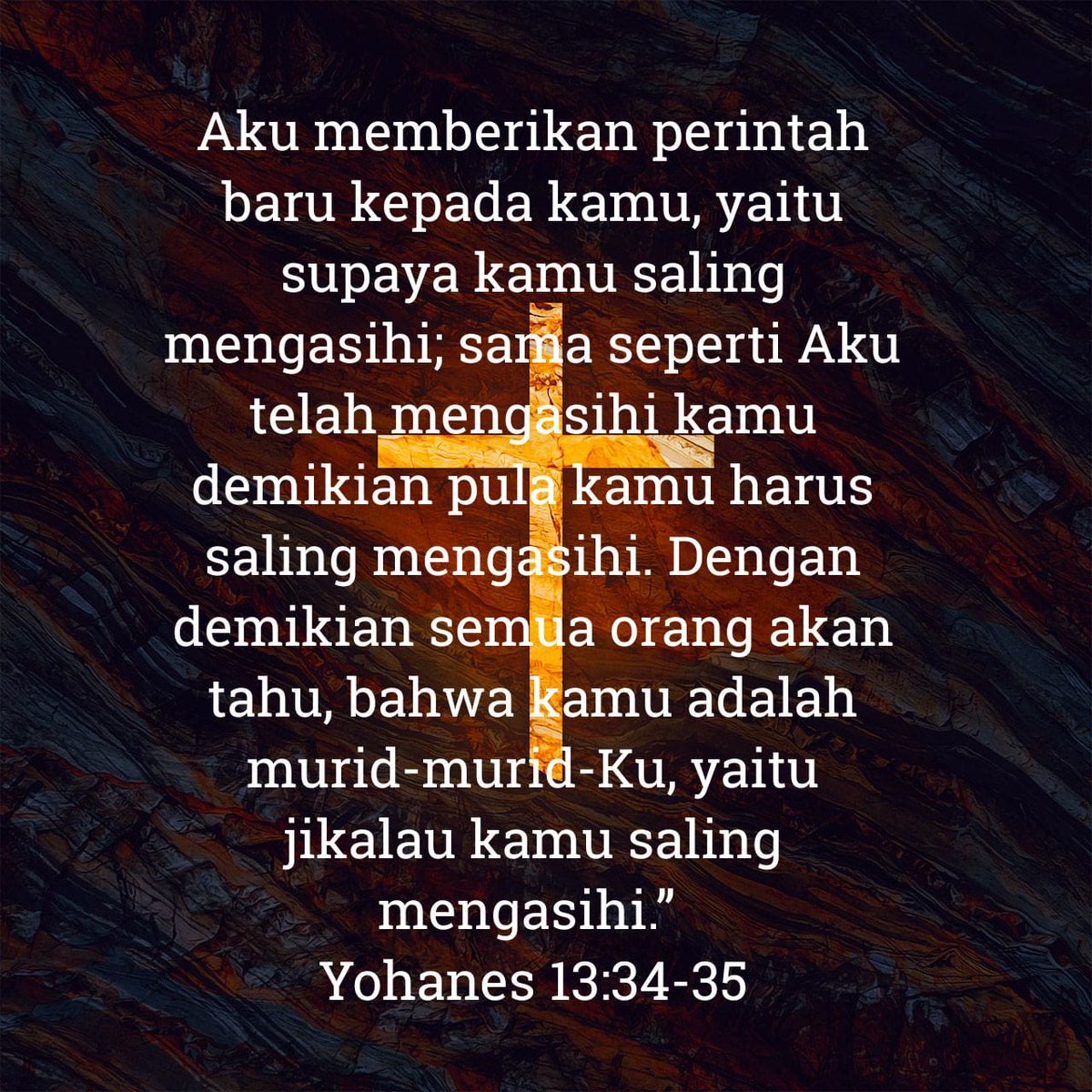 Aku memberikan perintah baru kepada kamu, yaitu supaya kamu saling mengasihi; sama seperti Aku telah mengasihi kamu demikian pula kamu harus saling mengasihi.